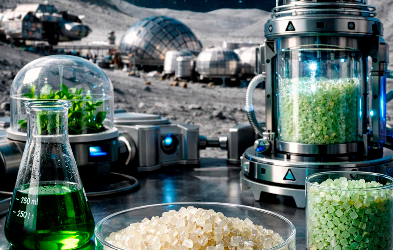 Tecnología TecnologíaEliminamos la dependencia de polímeros derivados del petróleo terrestre para crear un ecosistema de materiales autónomo en el espacio.